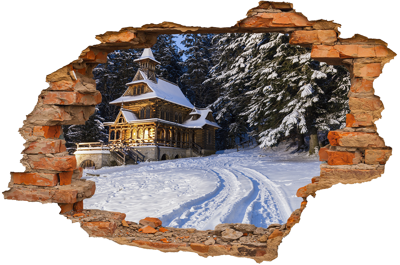 Dziura w ścianie, efekt 3D, zimowy krajobraz - d-krz-13