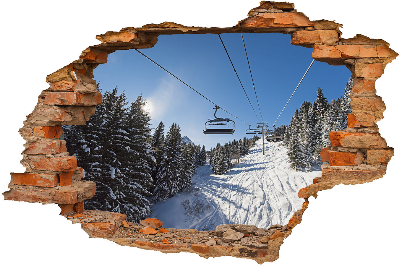 Dziura w ścianie, efekt 3D, zimowy krajobraz, stok narciarski - d-krz-27