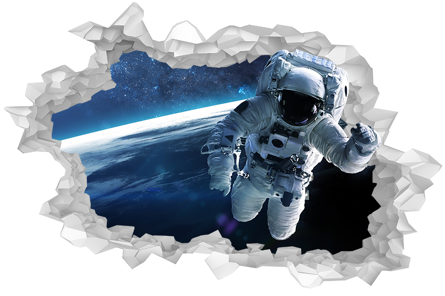 Interesujący obraz w formie otworu w ścianie 3d - obraz wycięty po obrysie dziury.