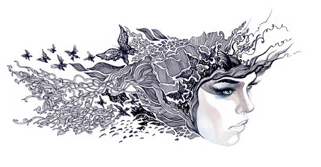 Grafika na ścianę - Kobieca twarz, abstrakcja - #39917879