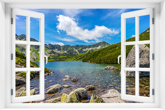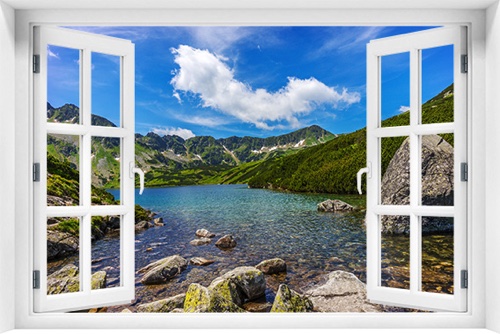 Fototapeta 3D Okno Krajobraz Góry Jezioro kr-315