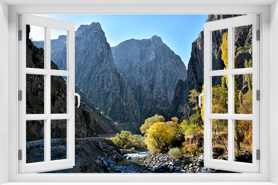 Fototapeta 3D Okno Krajobraz Góry kr-274
