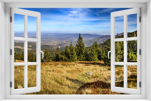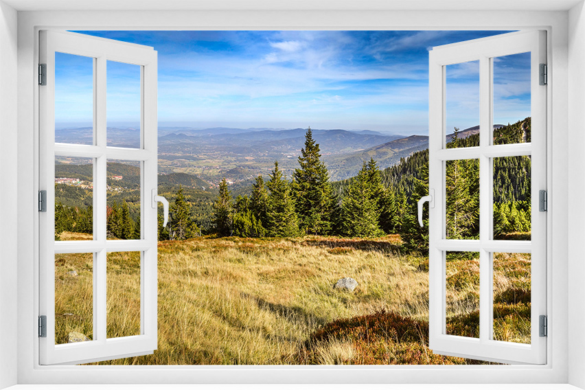 Fototapeta 3D Okno Krajobraz Góry kr-330