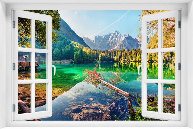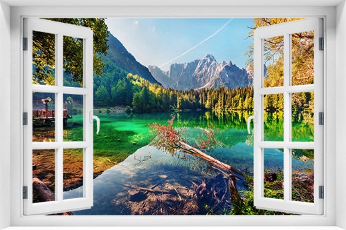 Fototapeta 3D Okno Krajobraz Jezioro Góry kr-291