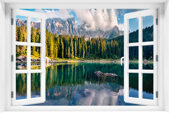 Fototapeta 3D Okno Krajobraz Jezioro Góry kr-296