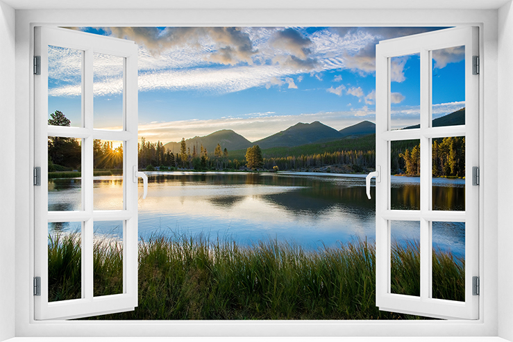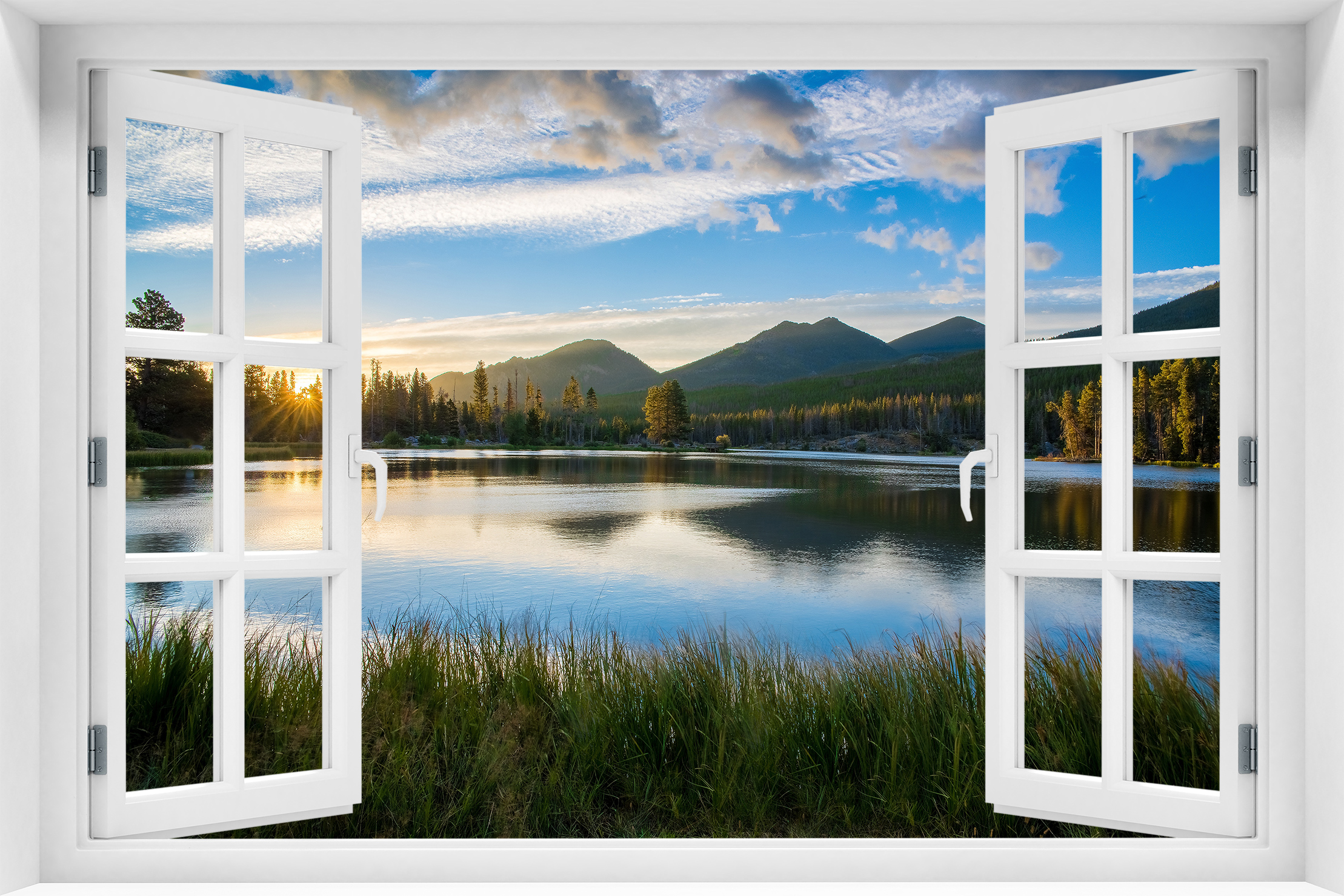 Fototapeta 3D Okno Krajobraz Jezioro Drzewa - kr-129