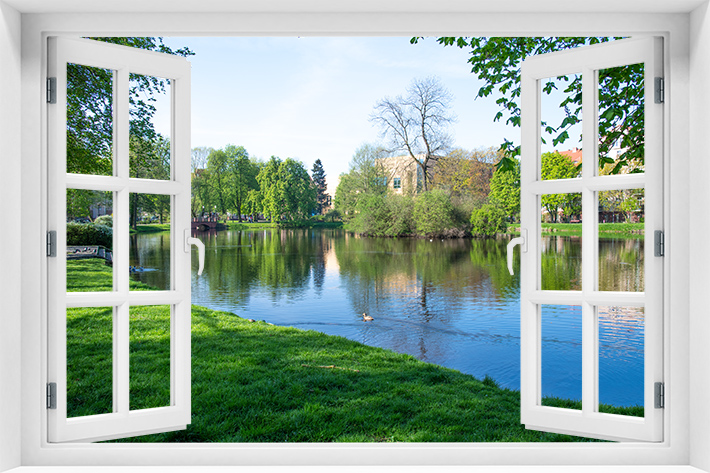 Fototapeta 3D Okno Krajobraz Park Jezioro - kr-167