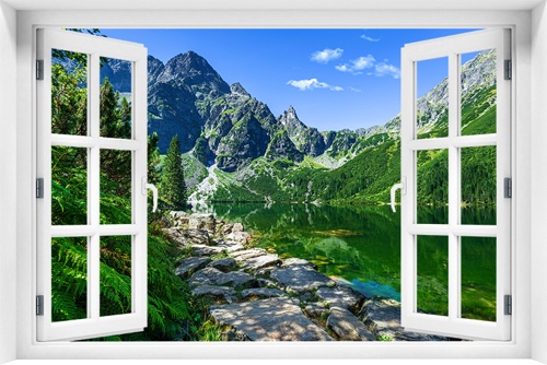 Fototapeta 3D Okno Krajobraz Góry Jezioro kr-334