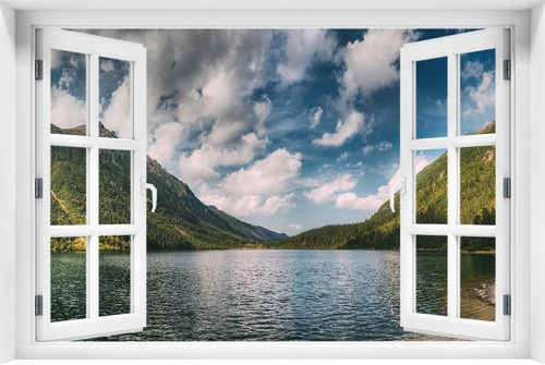 Fototapeta 3D Okno Krajobraz Góry Jezioro kr-347