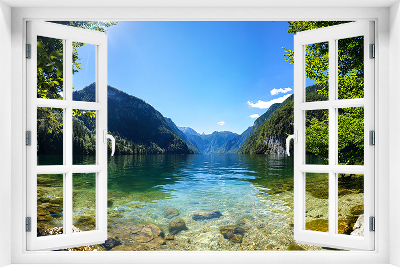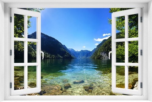 Fototapeta 3D Okno Krajobraz Góry Jezioro kr-349