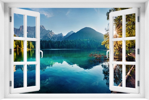 Fototapeta 3D Okno Krajobraz Góry Jezioro kr-357