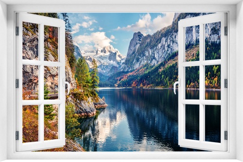 Fototapeta 3D Okno Krajobraz Góry kr-356