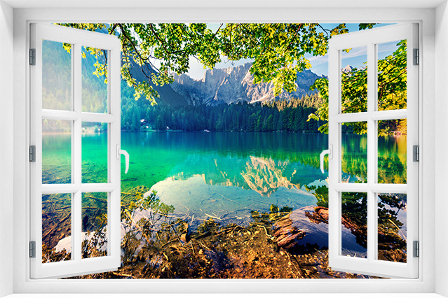 Fototapeta 3D Okno Krajobraz Jezioro Góry kr-288