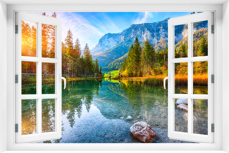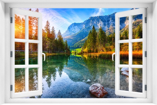 Fototapeta 3D Okno Krajobraz Jezioro Góry kr-336