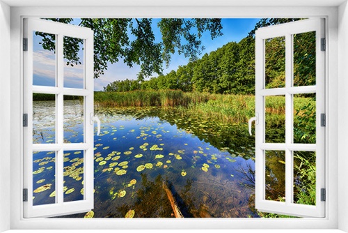Fototapeta 3D Okno Krajobraz Jezioro kr-302