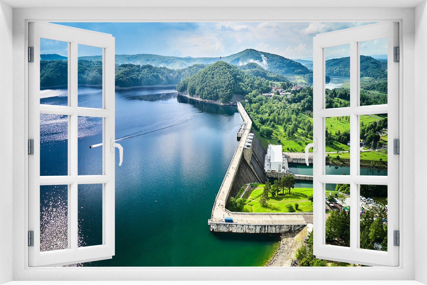 Fototapeta 3D Okno Krajobraz Natura Woda - kr-435
