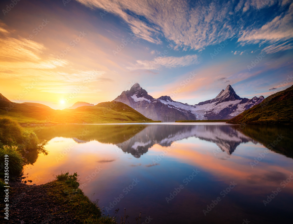 Wspaniała panorama alpejskiego jeziora Bachalpsee o świcie - #5399