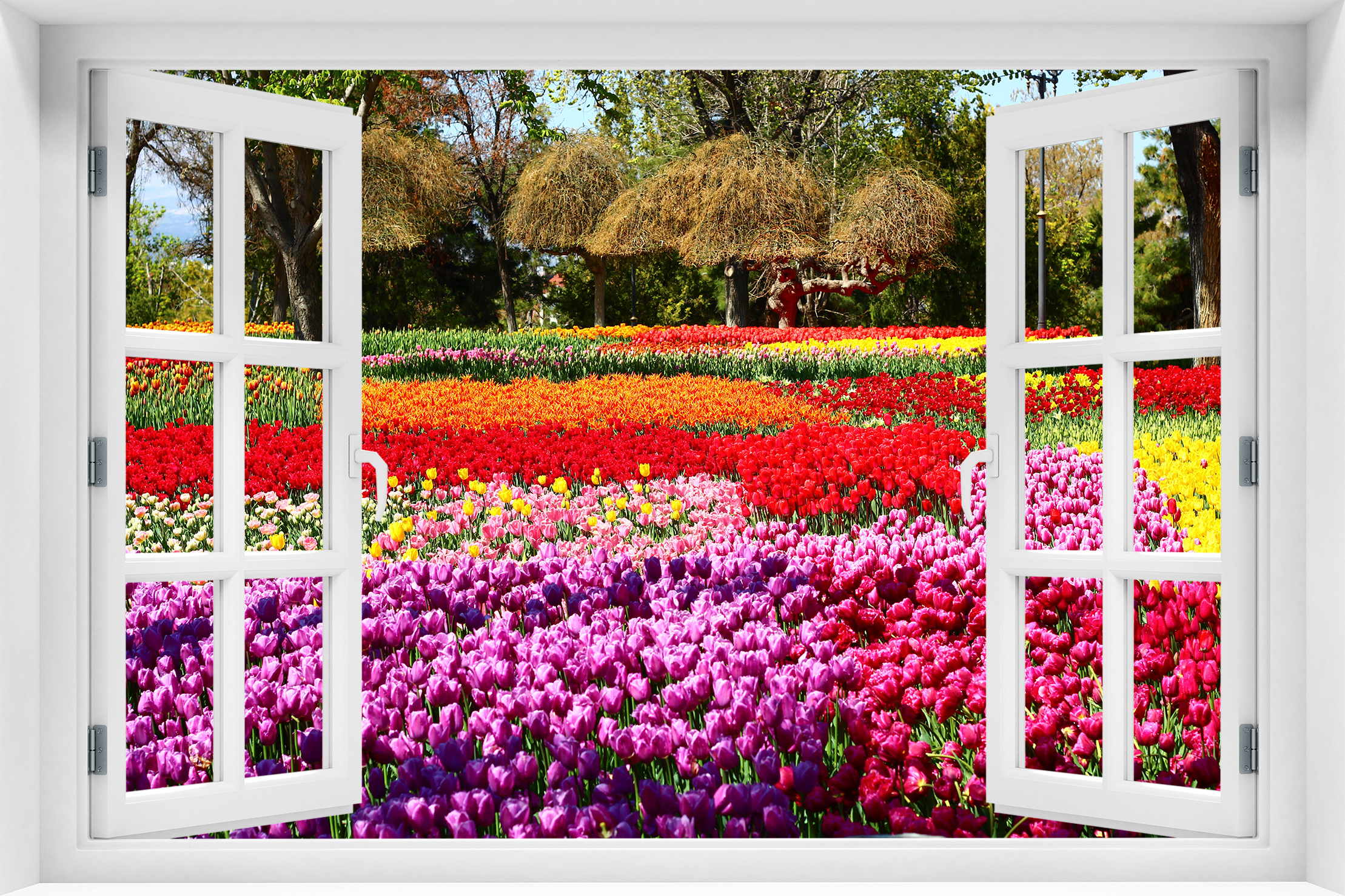 Fototapeta 3D Okno Park Kwiaty - kr-123