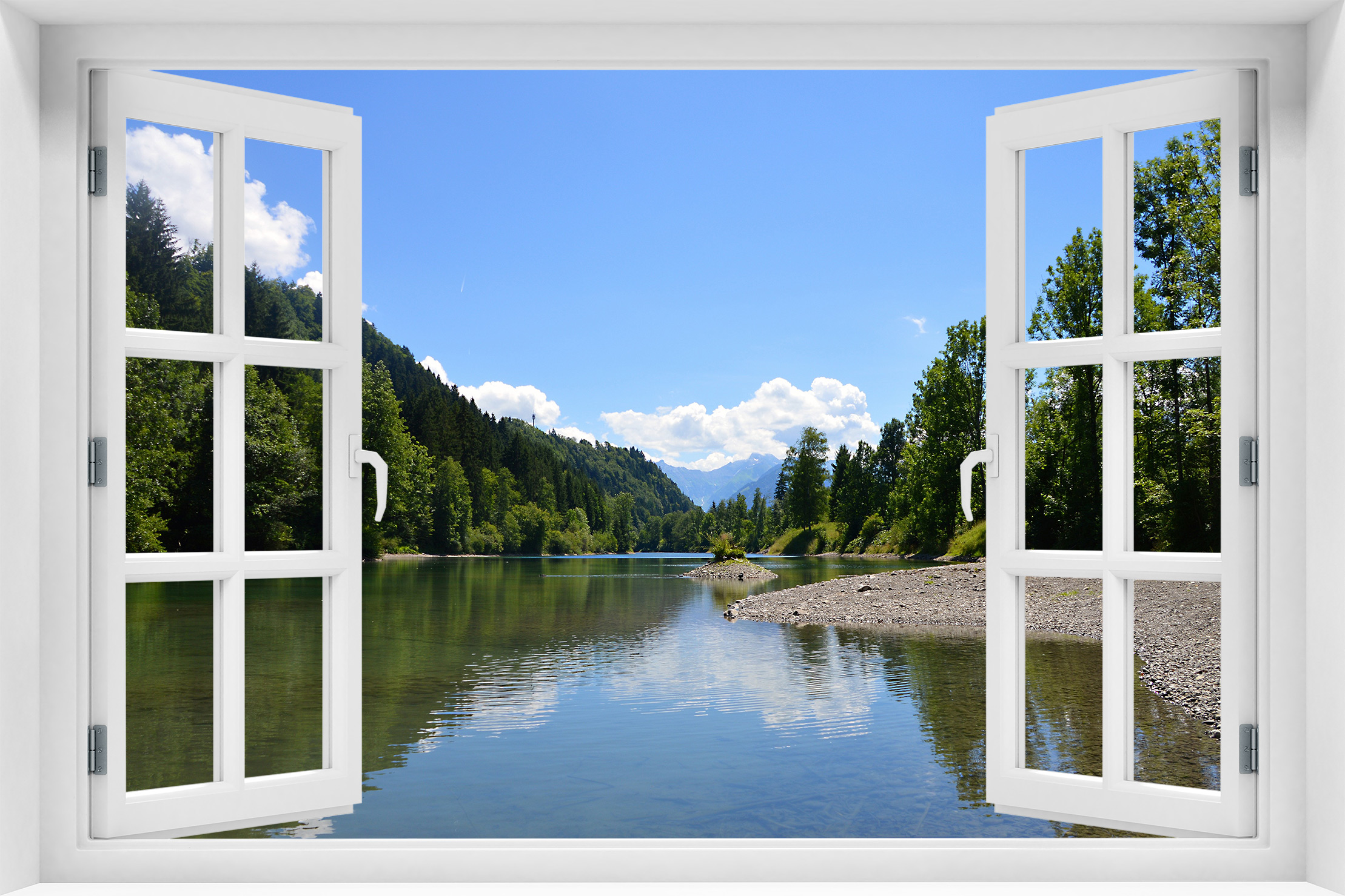 Fototapeta 3D Okno Jezioro Drzewa Woda kr-53