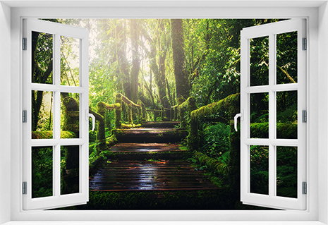 Fototapeta 3D Okno - Krajobrazy Las Drzewa kr-las-3
