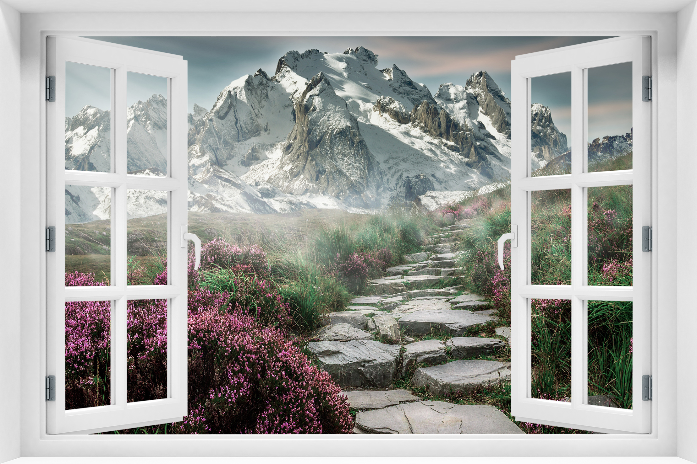 Fototapeta 3D Okno Krajobraz Góry - kr-146