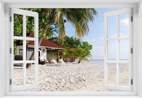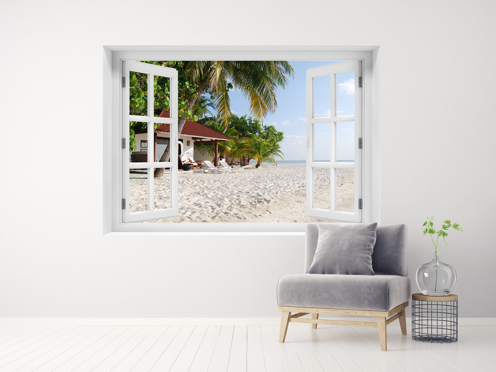 Fototapeta 3D Okno - Plaża Malediwy p-m-0212