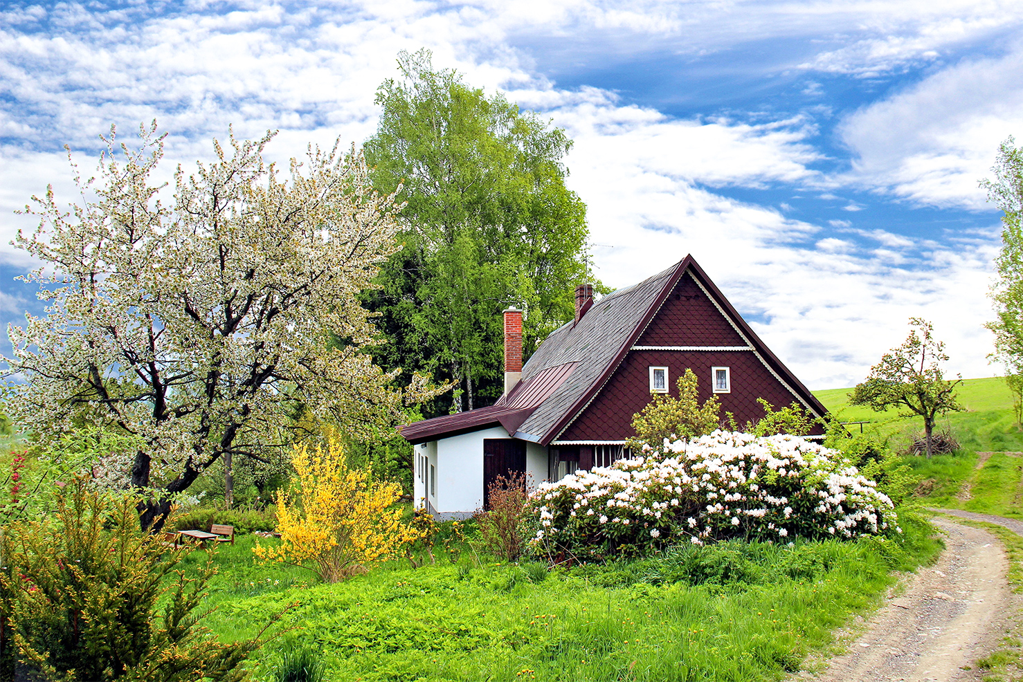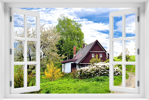 Fototapeta 3D Okno Krajobraz Dom Kwiaty - kr-193