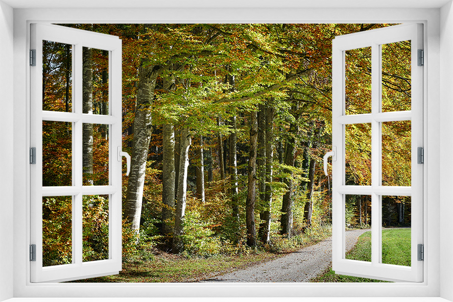 Fototapeta 3D Okno Krajobraz Drzewa Park - kr-223