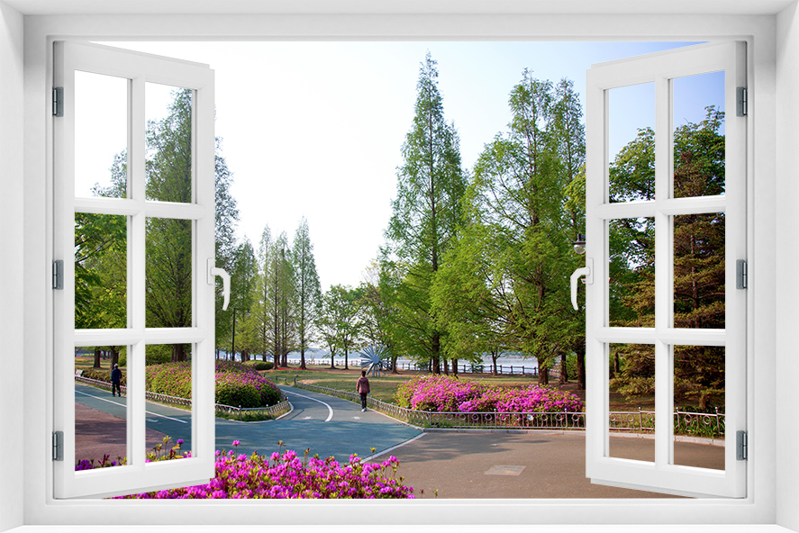 Fototapeta 3D Okno Krajobraz Drzewa Park - kr-225