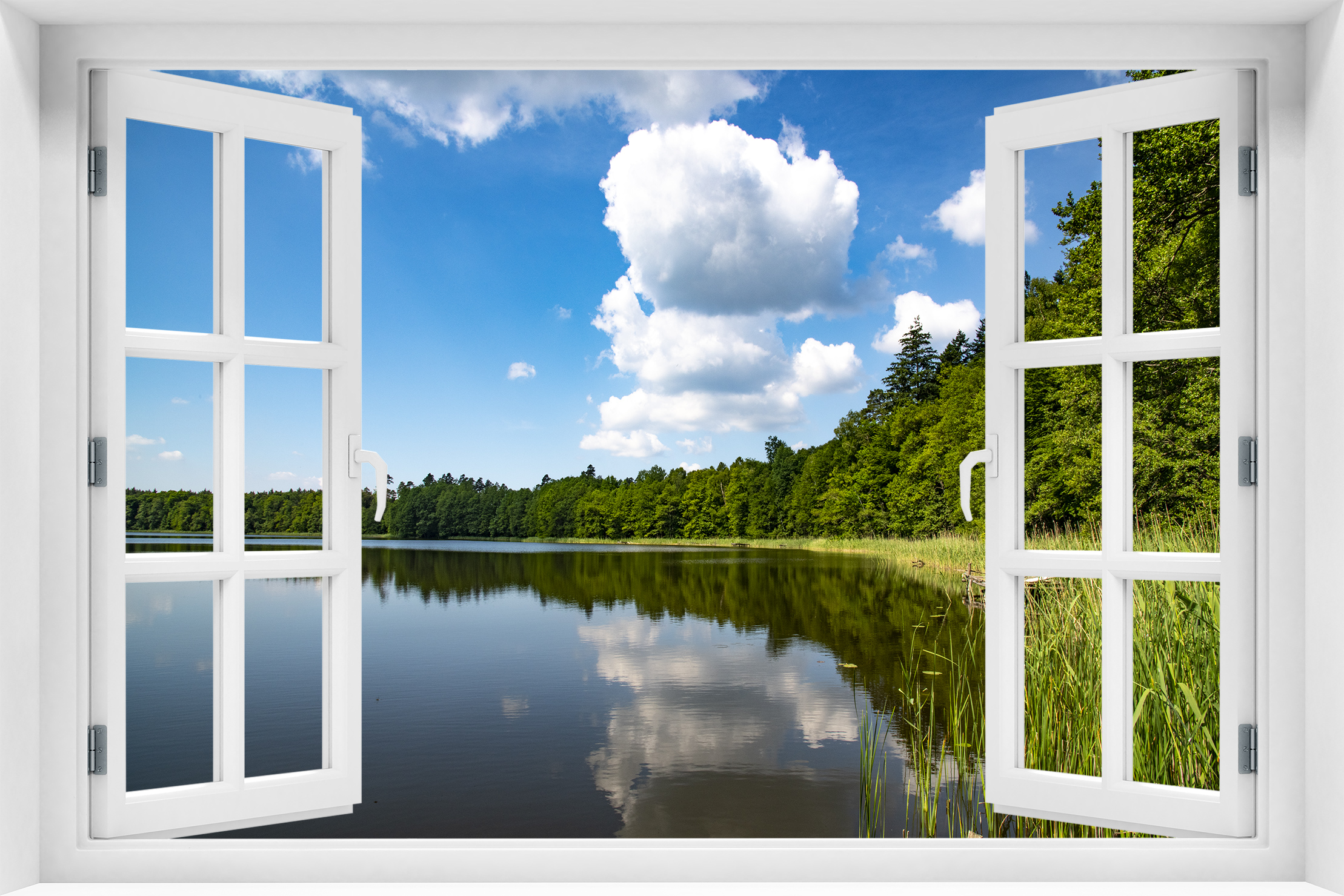 Fototapeta 3D Okno Krajobraz Jezioro Las - kr-192