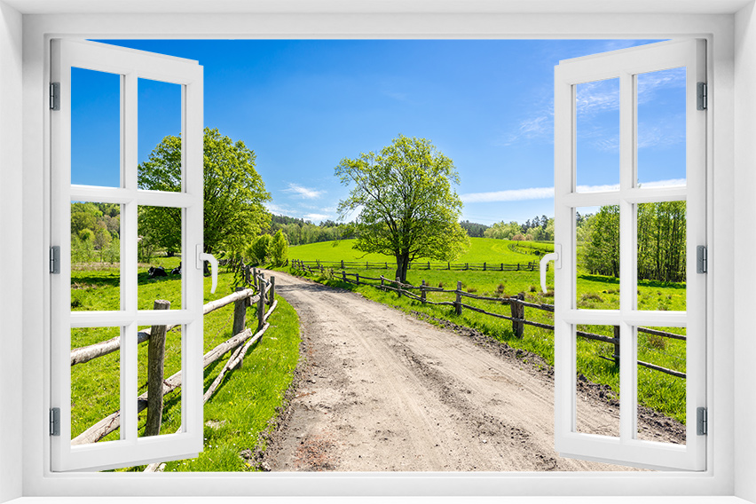 Fototapeta 3D Okno Krajobraz Droga Drzewa kr-329