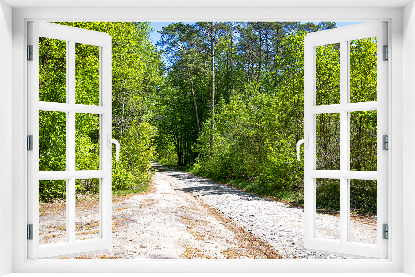 Fototapeta 3D Okno Krajobraz Las Droga - N-4410