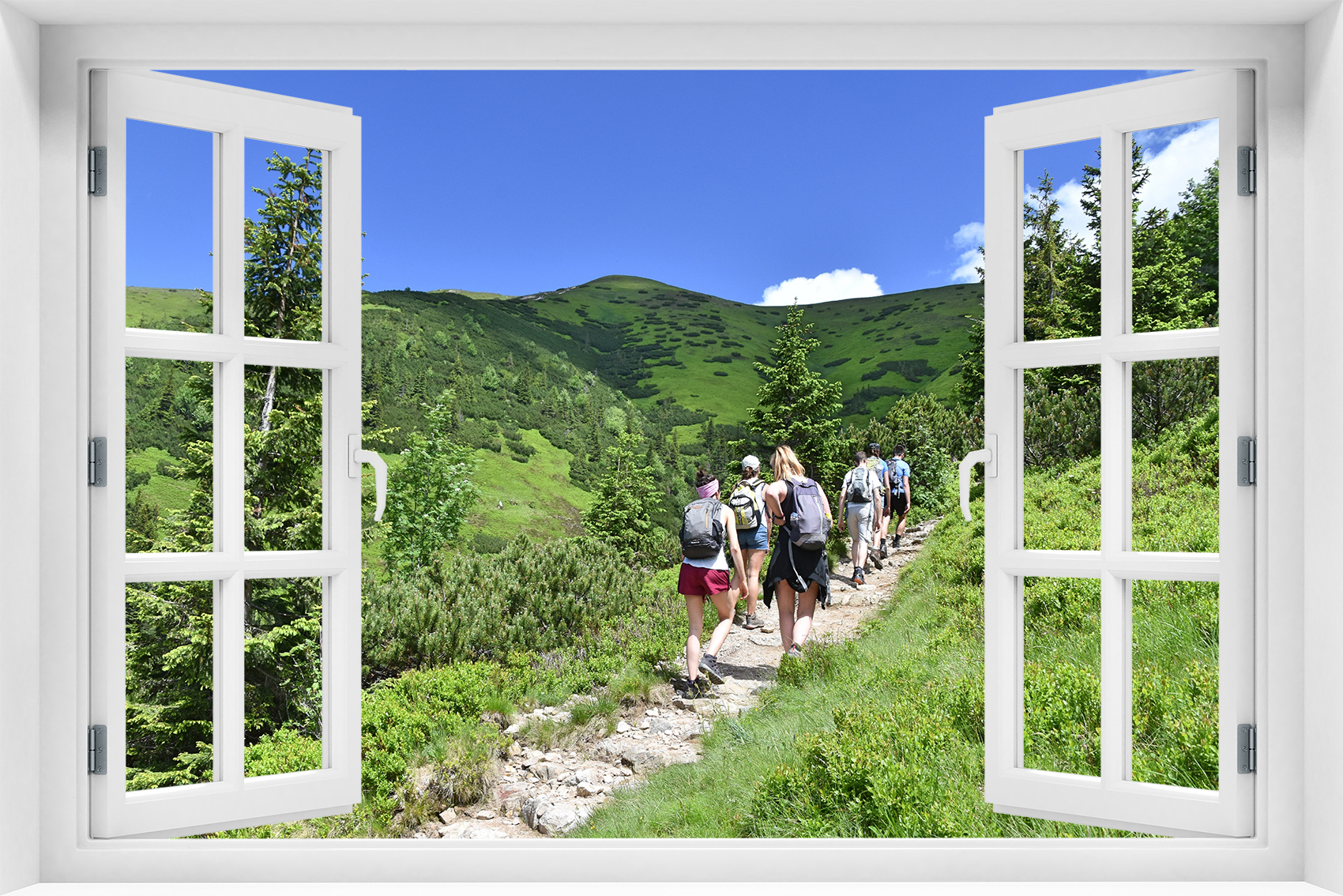 Fototapeta 3D Okno Krajobraz Las Drzewa Góry - kr-429