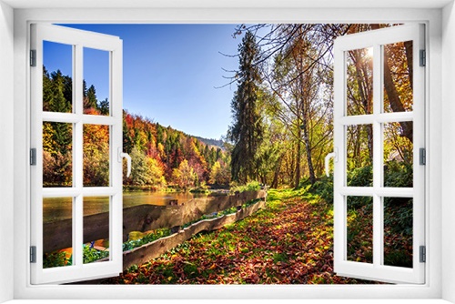 Fototapeta 3D Okno Krajobraz Las Jezioro kr-311