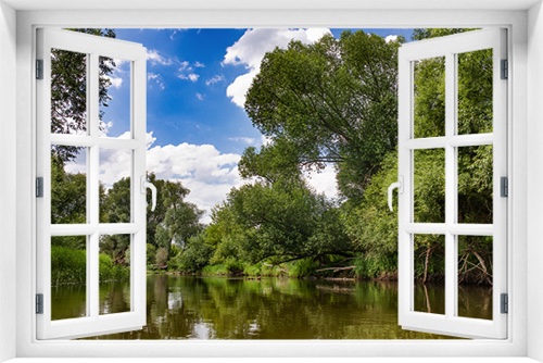 Fototapeta 3D Okno Krajobraz Las Jezioro kr-313