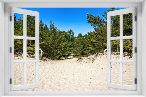 Fototapeta 3D Okno Krajobraz Plaża Drzewa kr-325