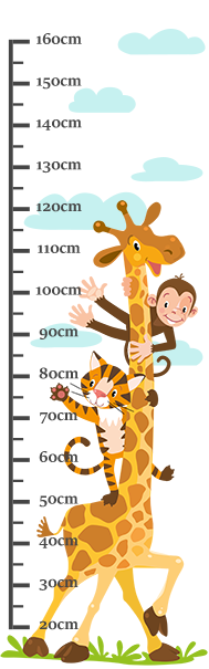 Aby pomiar wzrostu był prawidłowy, należy nakleić naklejkę 10cm od krawędzi podłogi. Miarka posiada podziałkę zaczynającą się od 20cm.