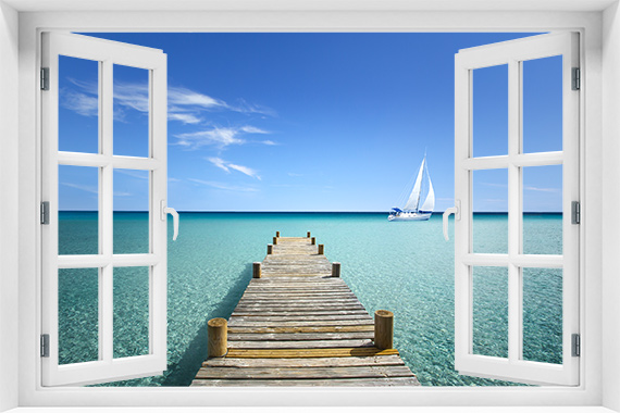 Fototapeta 3D Okno Krajobraz Morze Plaża - kr-424