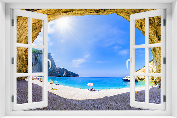 Fototapeta 3D Okno Krajobraz Morze Plaża - kr-465