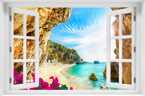 Fototapeta 3D Okno Krajobraz Morze Plaża - kr-468