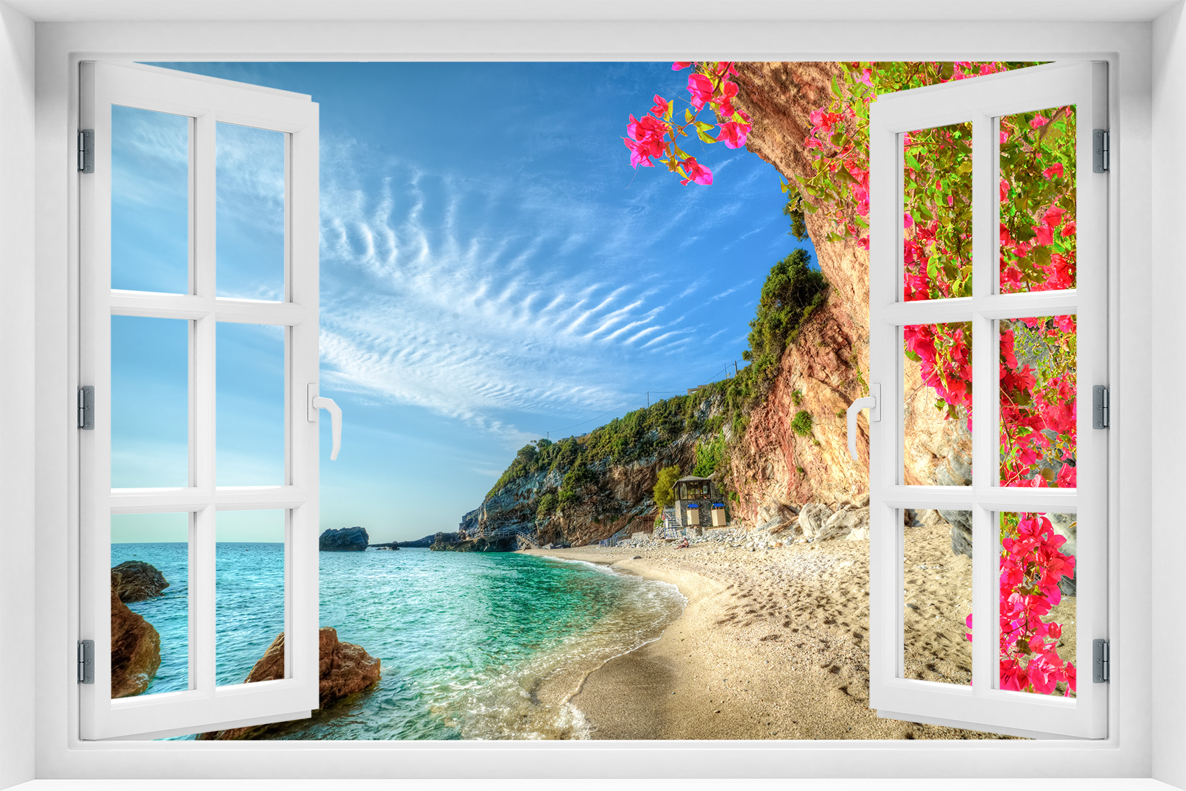 Fototapeta 3D Okno Krajobraz Morze Plaża - kr-473