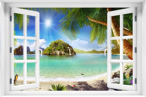 Fototapeta 3D Okno Krajobraz Plaża Morze kr-341