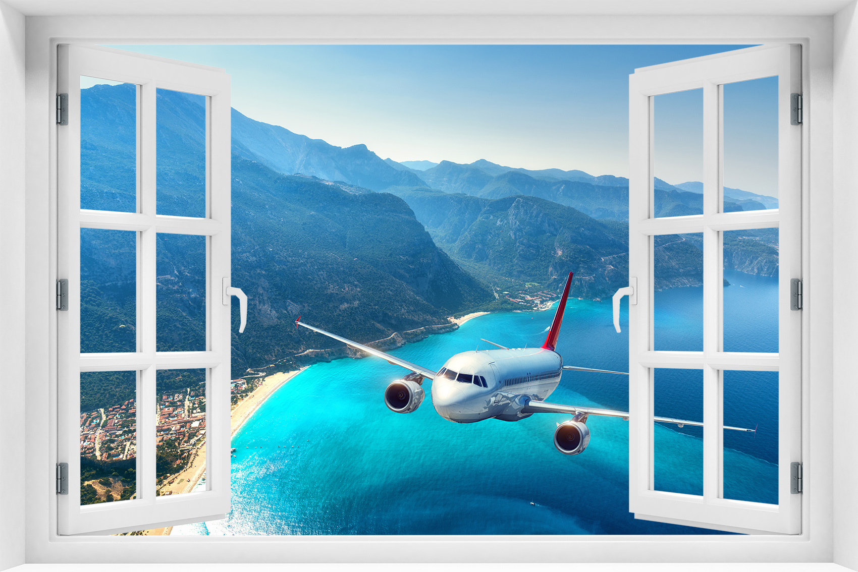 Fototapeta 3D Okno Krajobraz Samolot - kr-455