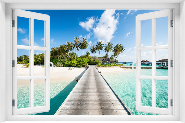 Fototapeta 3D Okno Krajobraz Tropiki kr-282