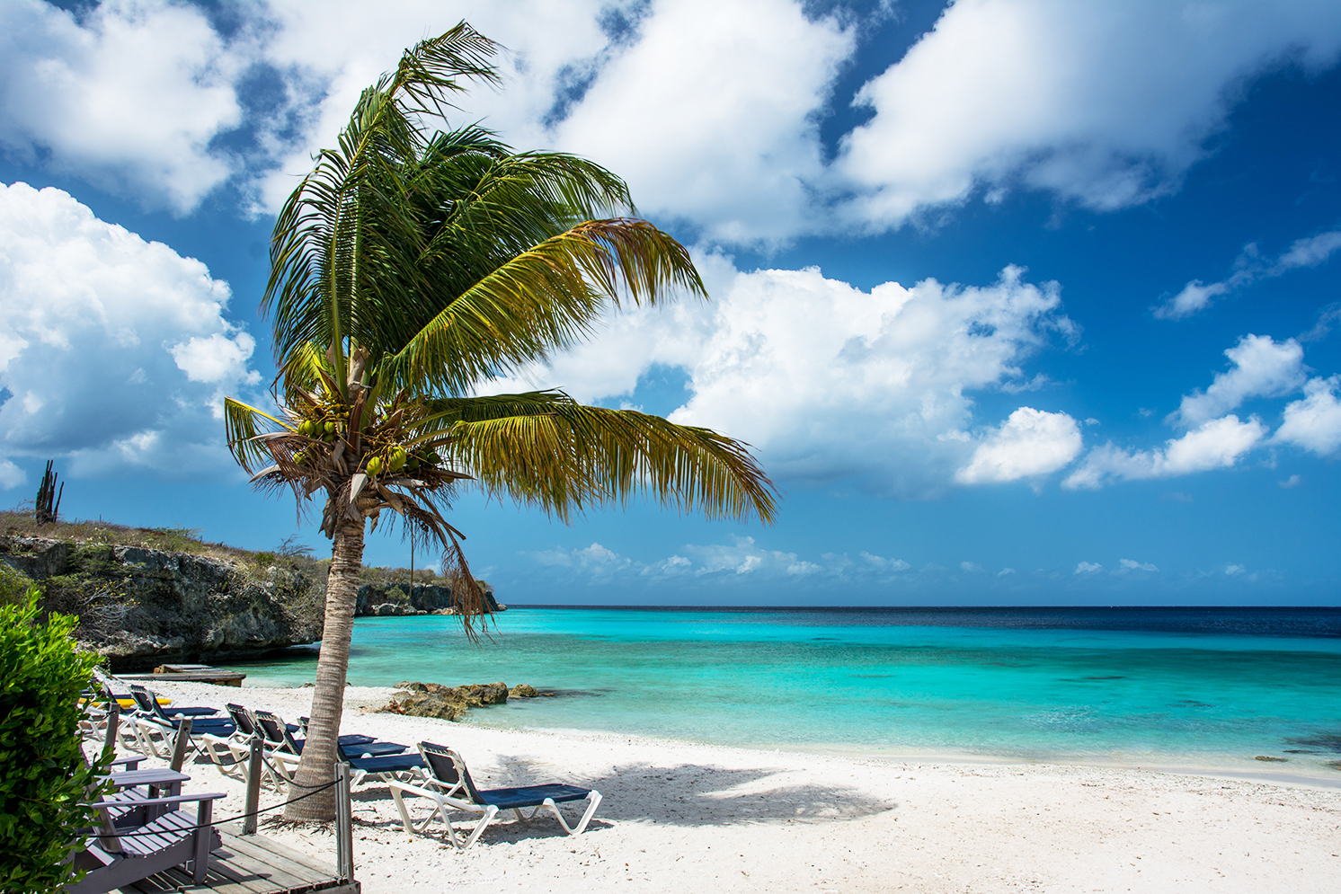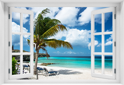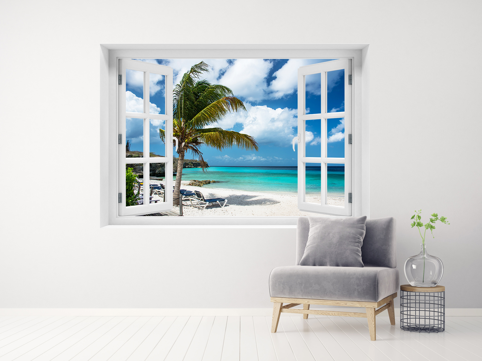 Fototapeta 3D Okno - Plaża Morze Palmy p-1