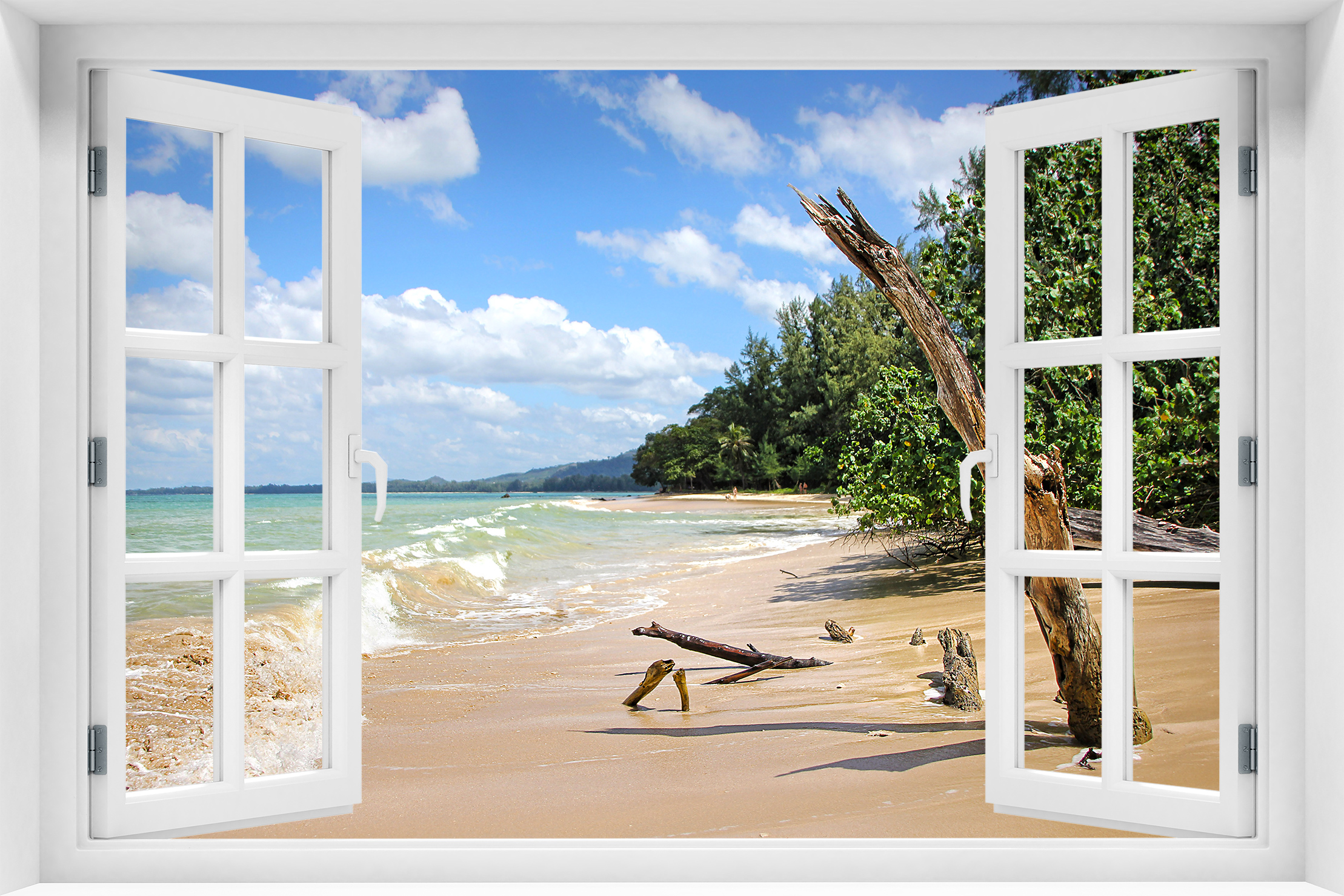 Fototapeta 3D Okno Natura Plaża Wakacje Palmy - p-42