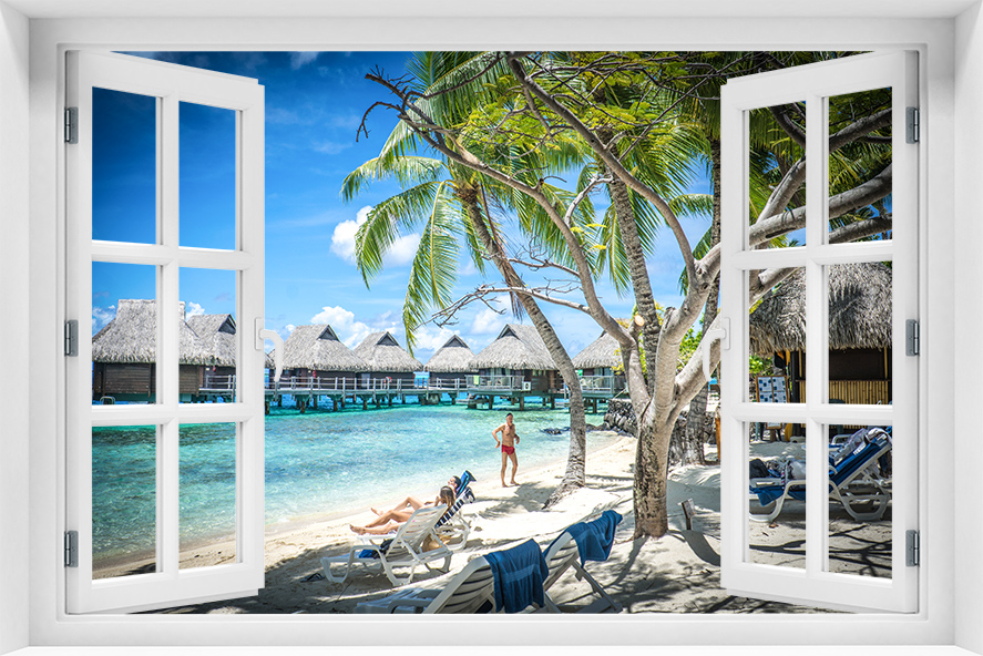 Fototapeta 3D Okno Natura Plaża Wakacje Palmy - p-43