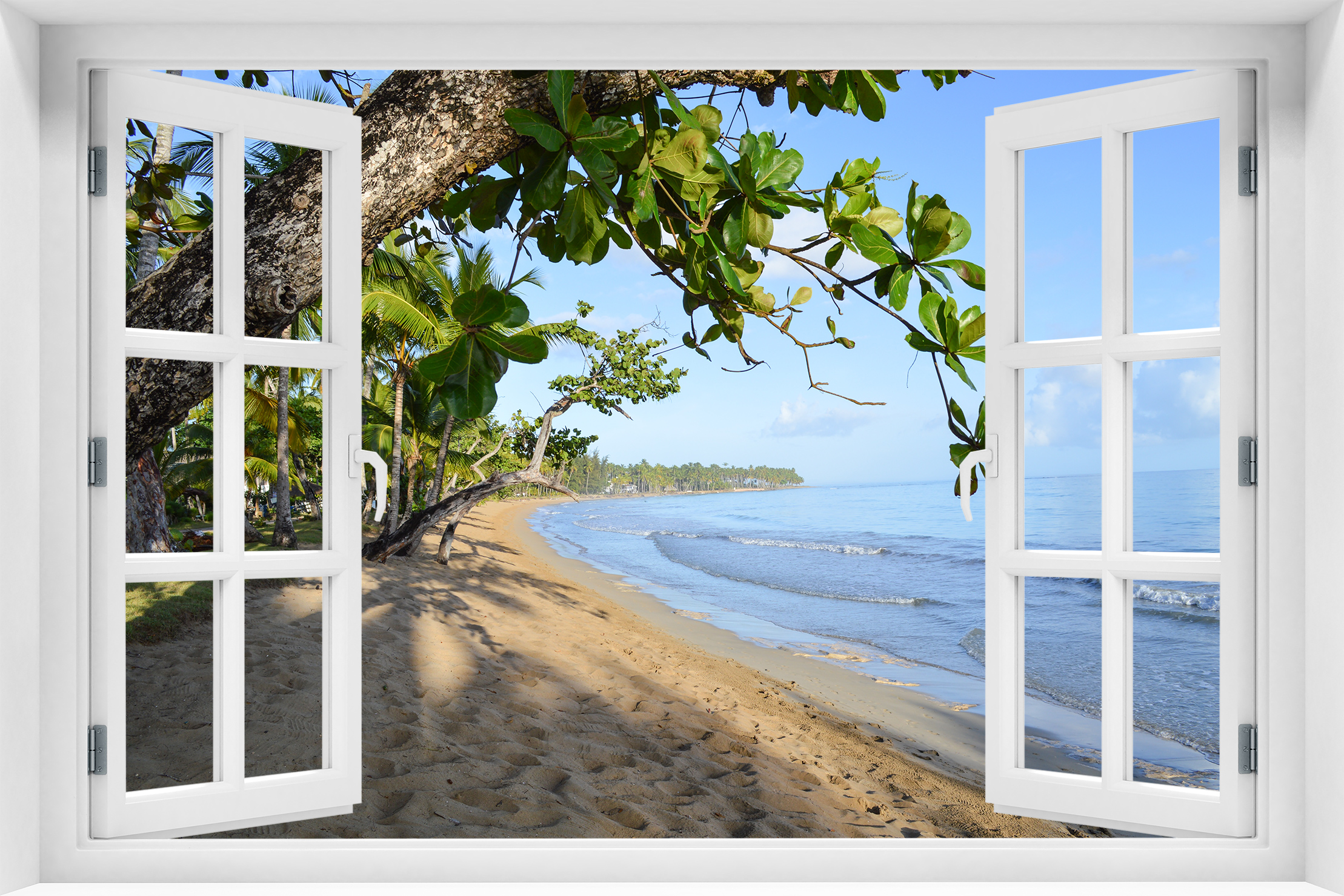 Fototapeta 3D Okno Natura Plaża Wakacje Palmy - p-44