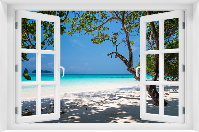Fototapeta 3D Okno Natura Plaża Wakacje Palmy - p-49