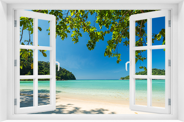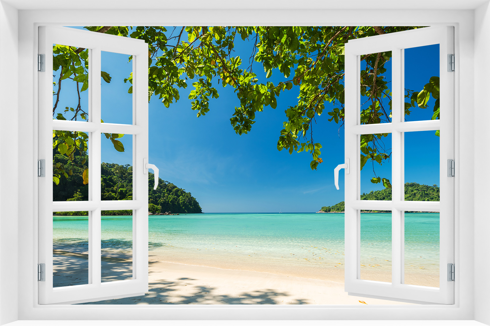 Fototapeta 3D Okno Natura Plaża Wakacje Palmy - p-51
